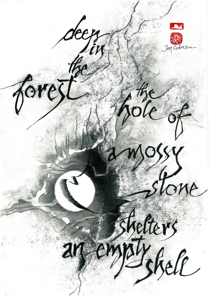 deep in the forest/ the hole of a mossy stone/ shelters an empty shell