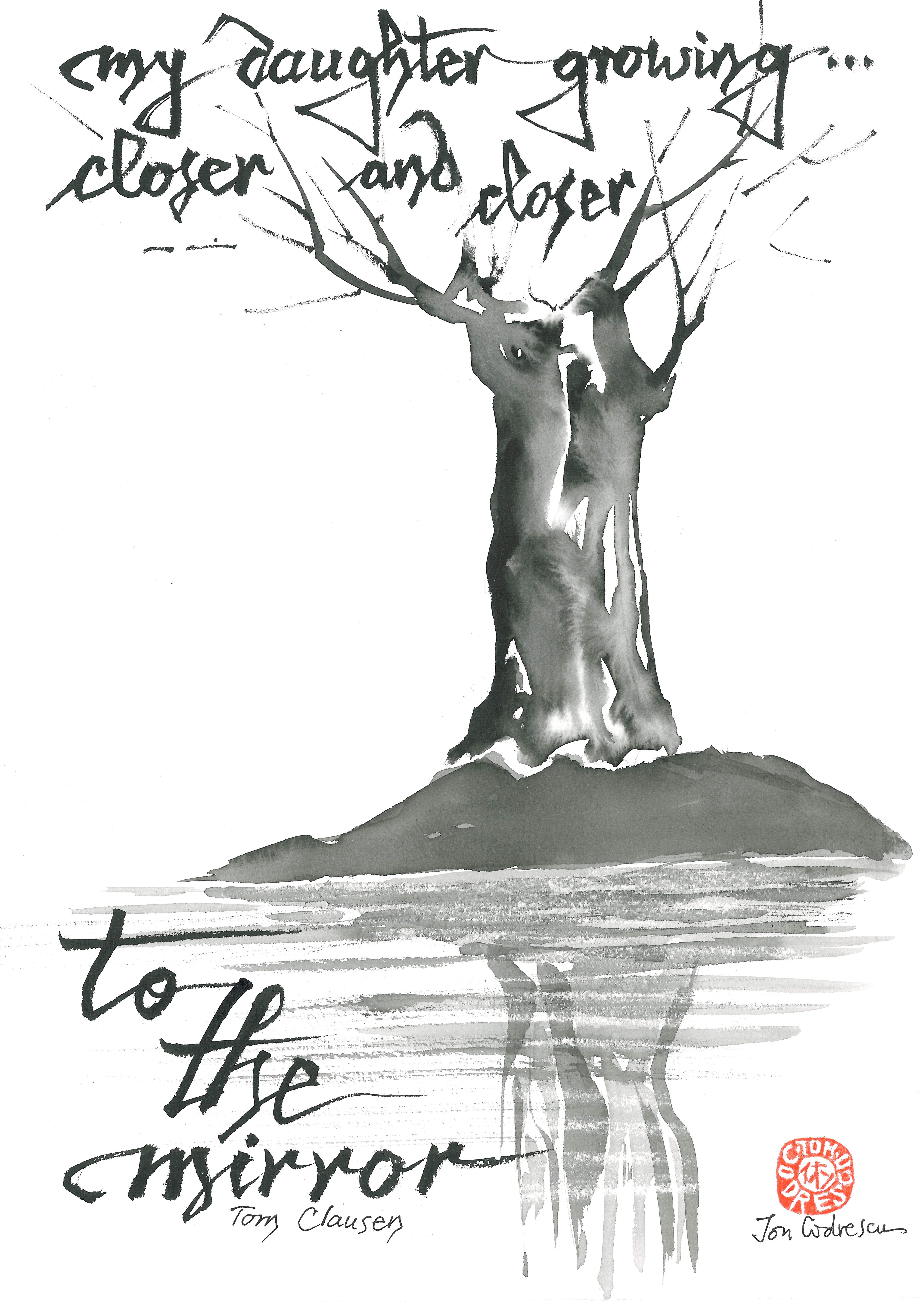 Tom Clausen’s haiku: my daughter growing . . ./ closer and closer/ to the mirror