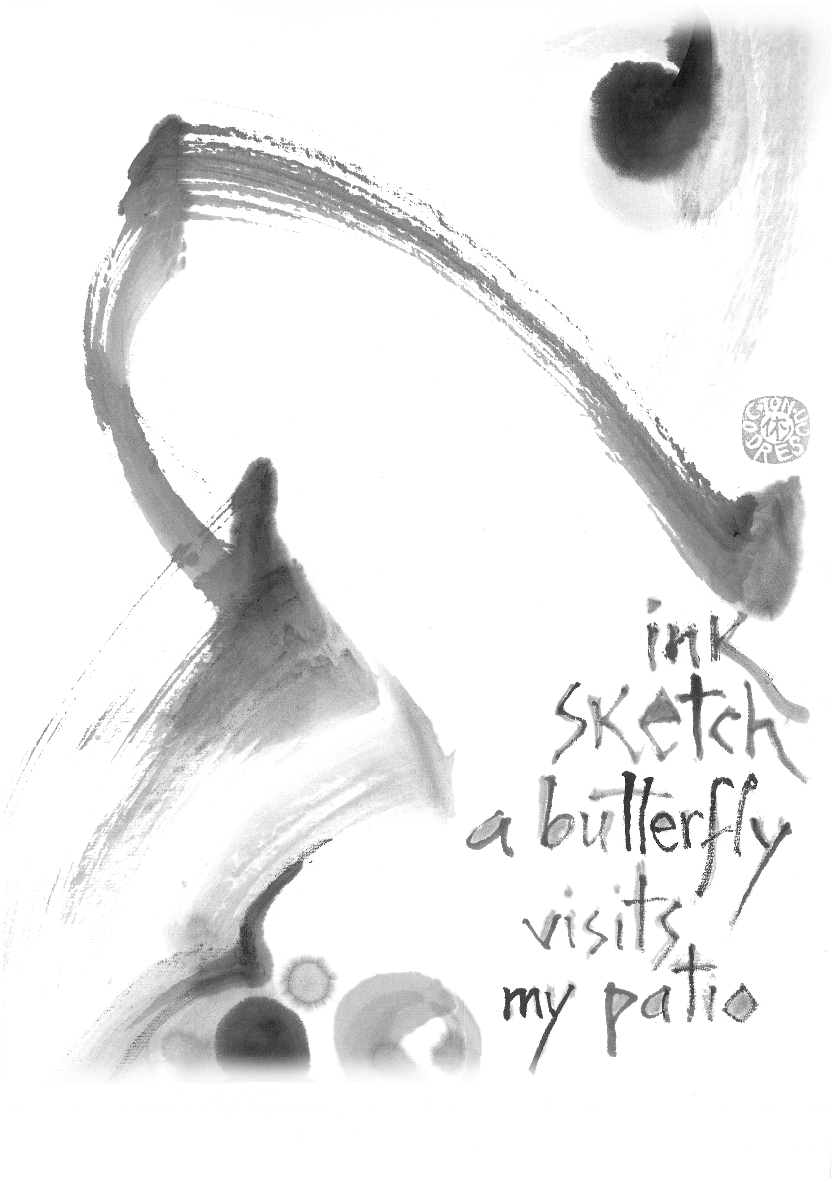 Ion Codrescu’s poem: ink sketch/ a butterfly/ visits my patio