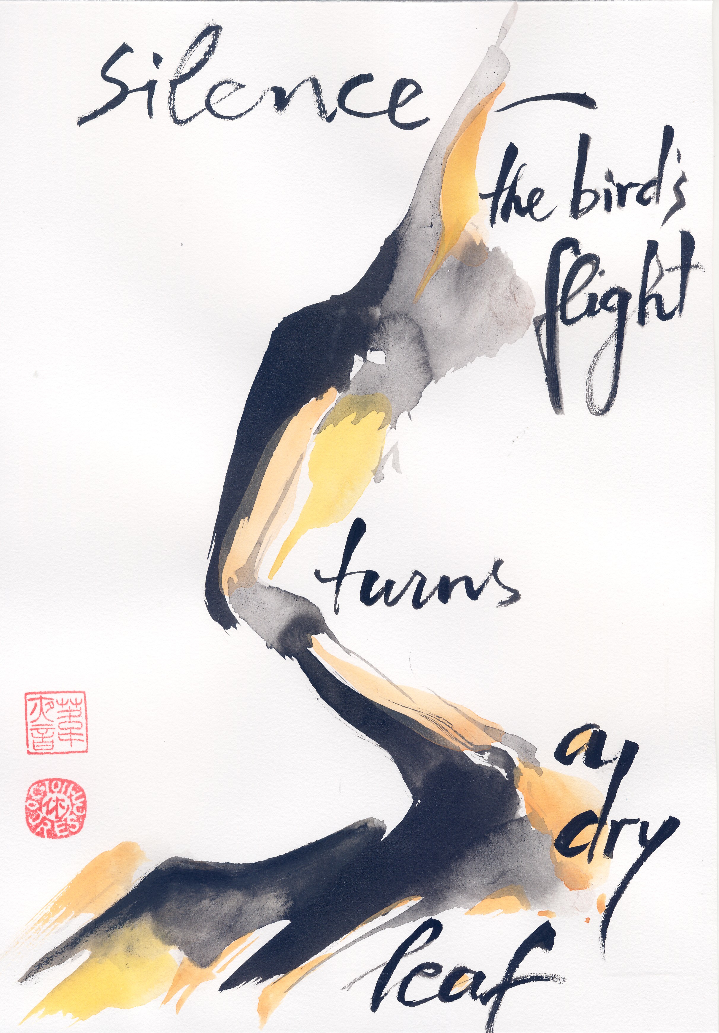 Ion Codrescu’s haiku: silence—/ the bird’s flight/ turns a dry leaf